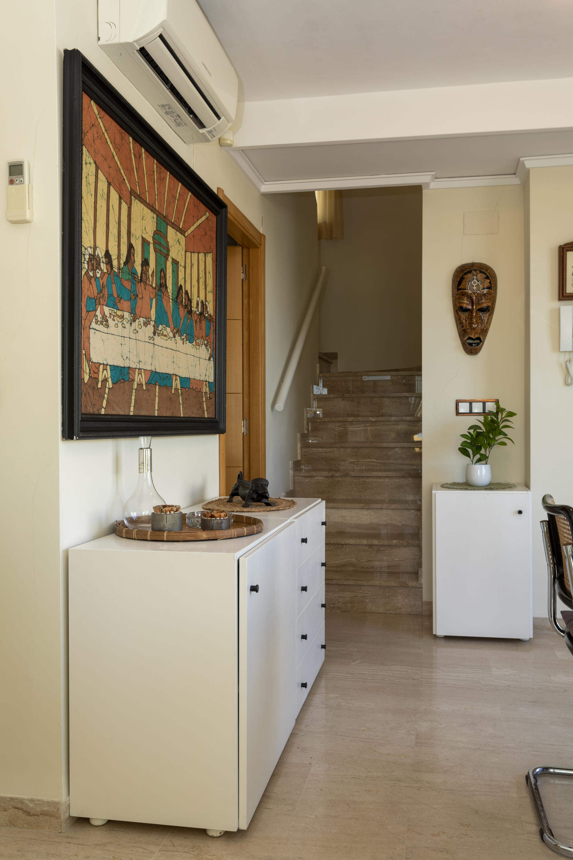 Fully equipped kitchen, dishwasher, oven, washing machine, gallery. Living room, satellite TV, Wifi, air conditioning hot/cold on each floor. Exit to the terrace with sea view. The terrace has sun loungers. The urbanization has a communal pool, large garden and free parking is located in front of the urbanization. Supermarket 400m from the urbanisation and bus stop just a few meters away. You will find several restaurants and bars on the main road of the Marinas and facing the sea.