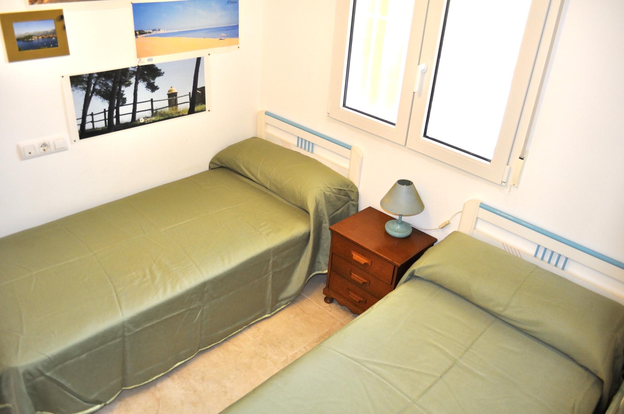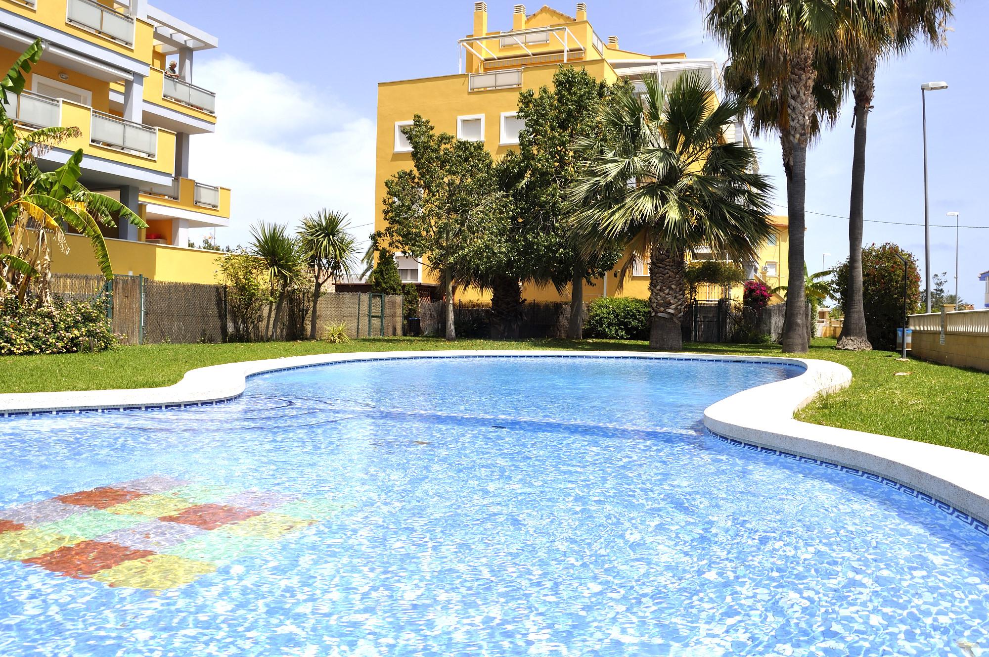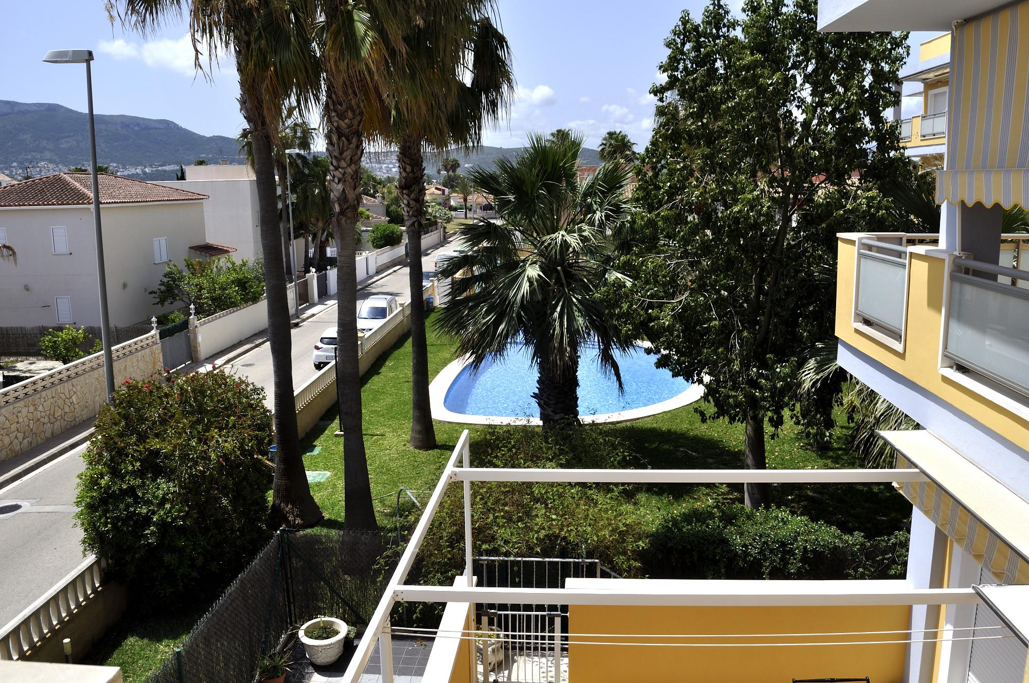 Apartment for 4 people. The apartment consists of 2 bedrooms, one bedroom with 1 double bed, exit to the terrace and the other bedroom with 2 single beds. Living room with access to the terrace, overlooking the community pool. Full bathroom with bathtub. Independent full kitchen. Covered parking space within the gated community. The urbanization has a communal pool. The situation of the urbanization is unbeatable, just 1.5 km from Dénia, 200 meters from the beach, in its surroundings it has a supermarket, restaurants, leisure.