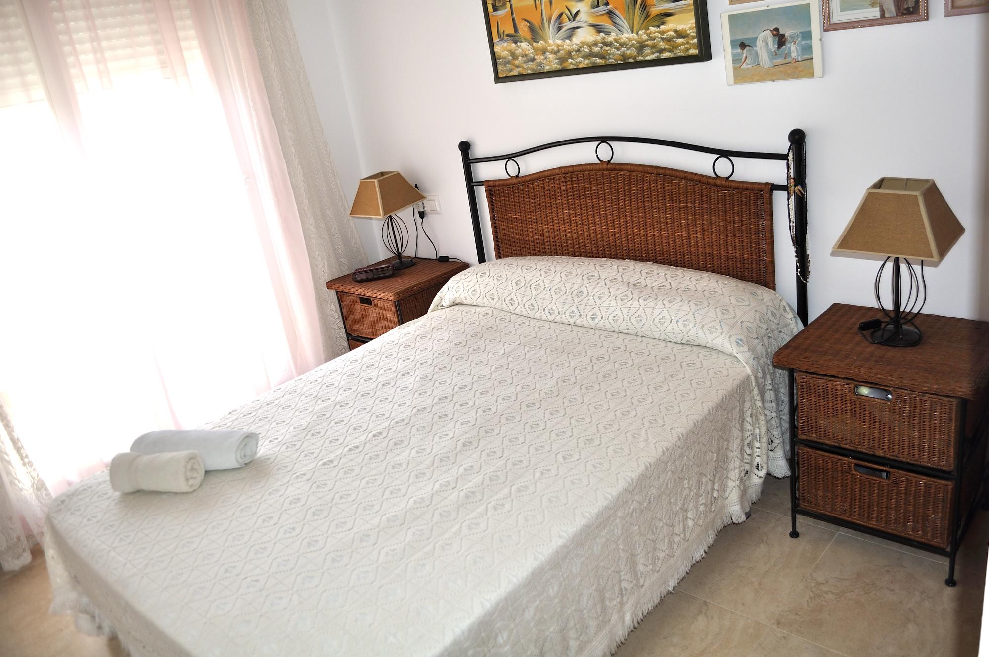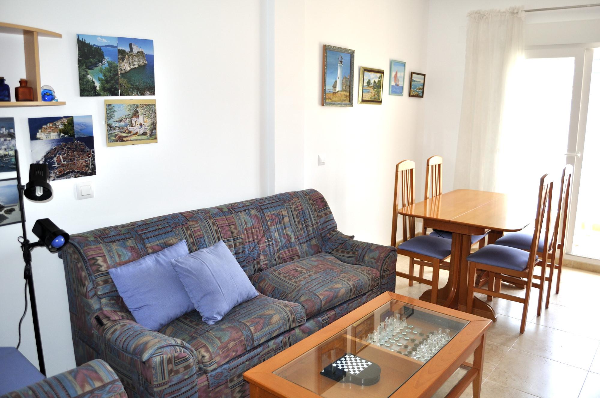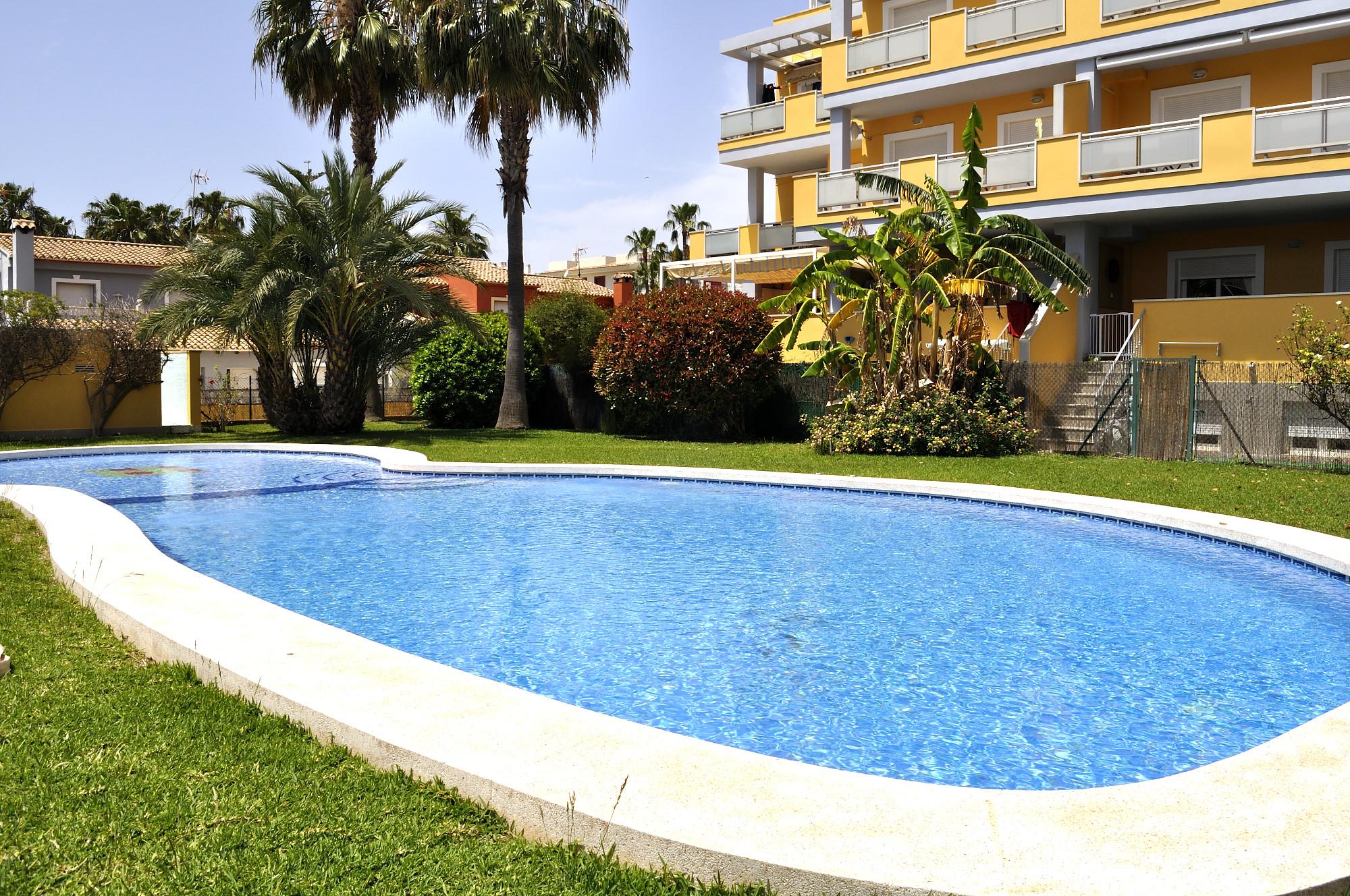 Apartment for 4 people. The apartment consists of 2 bedrooms, one bedroom with 1 double bed, exit to the terrace and the other bedroom with 2 single beds. Living room with access to the terrace, overlooking the community pool. Full bathroom with bathtub. Independent full kitchen. Covered parking space within the gated community. The urbanization has a communal pool. The situation of the urbanization is unbeatable, just 1.5 km from Dénia, 200 meters from the beach, in its surroundings it has a supermarket, restaurants, leisure.