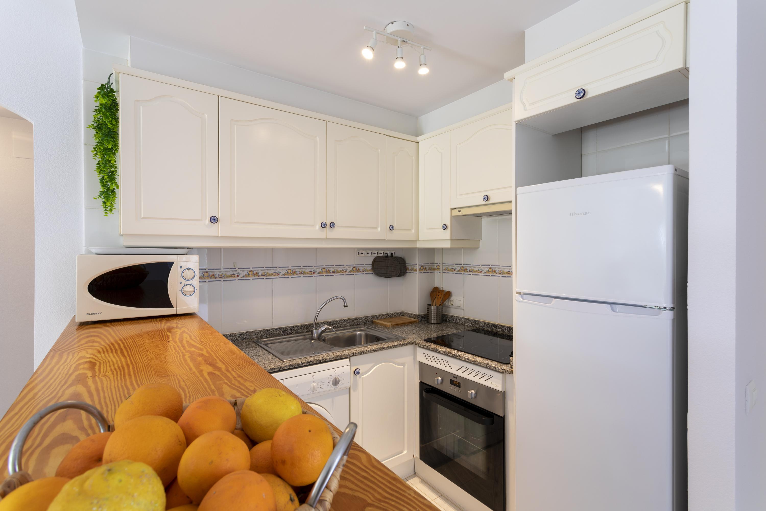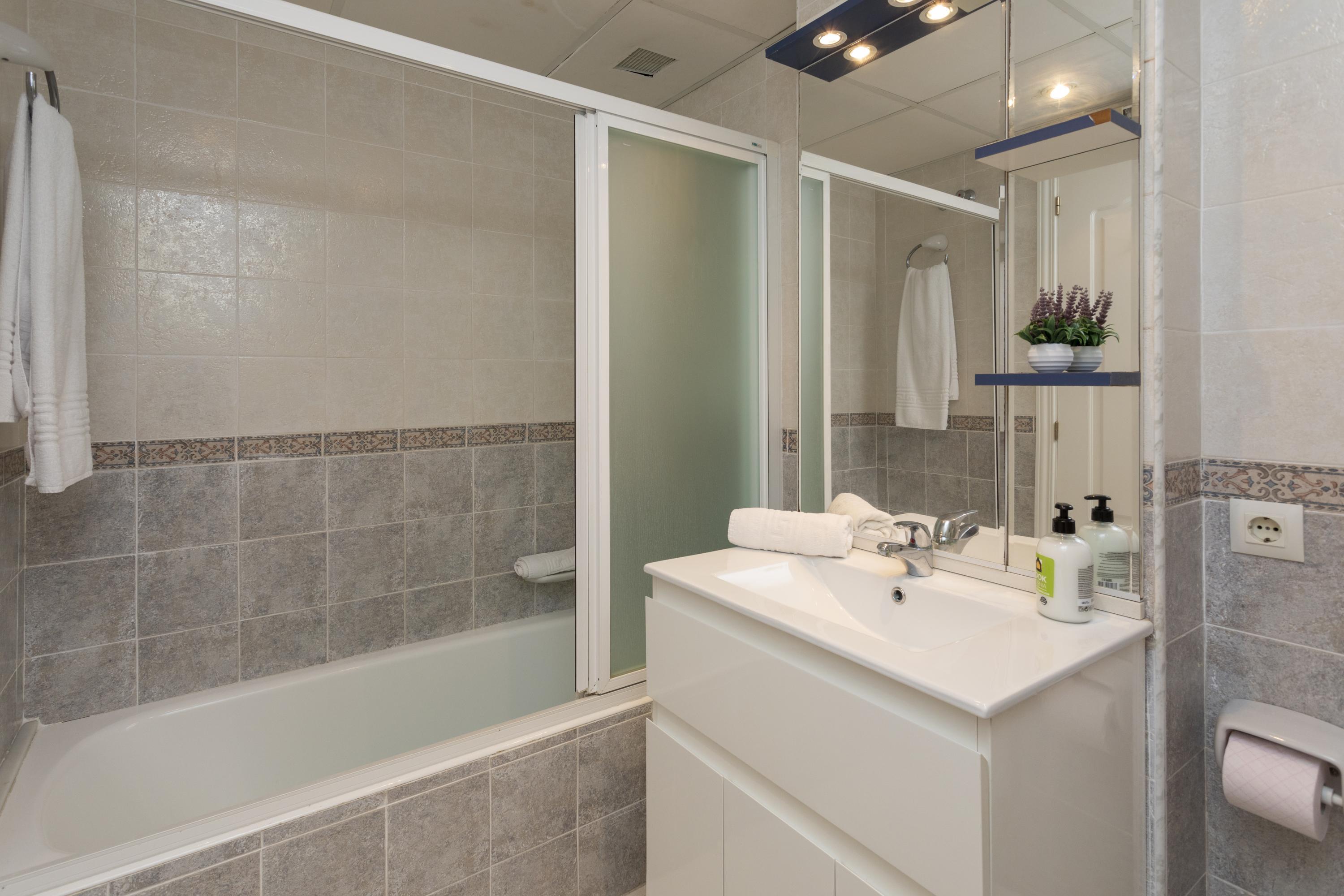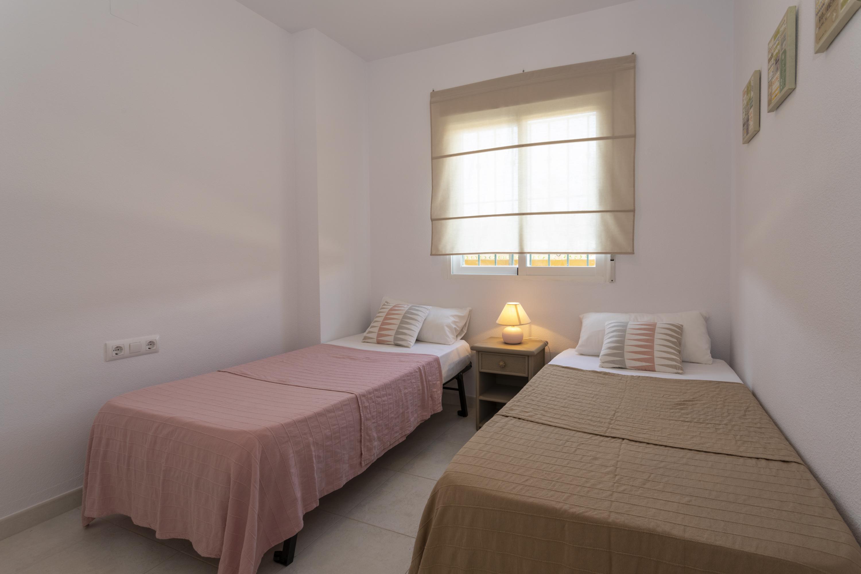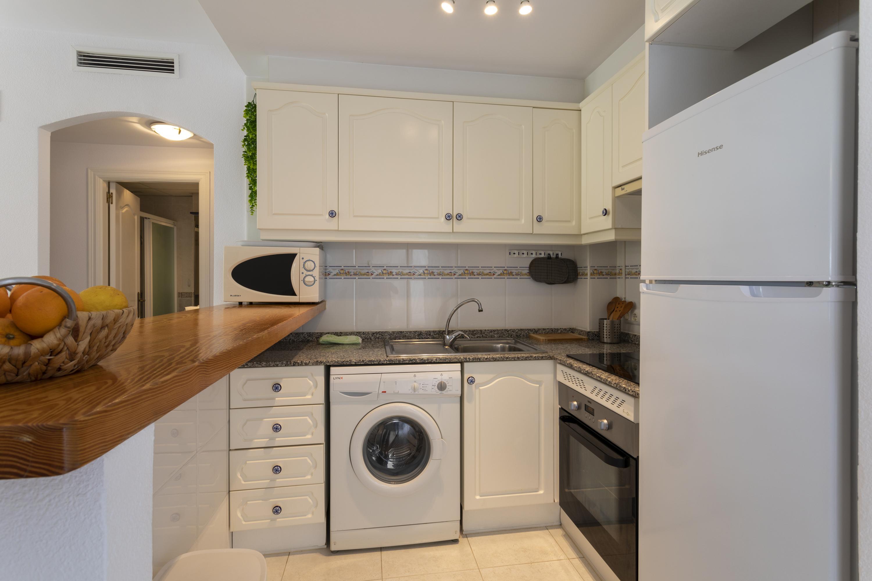 Cozy ground floor apartment with two bedrooms, terrace overlooking the communal pool. It consists of 2 double bedrooms, one with a double bed and the other with two single beds, a full kitchen with a breakfast bar, a living-dining room, Spanish TV and SAT, a full bathroom with a bathtub and a shower room. Central air conditioning. Parking space within the urbanization. The location of the apartment is perfect for a relaxing beach holiday, just 250 meters from Els Molins Dénia beach, in its surroundings there is a supermarket and several restaurants.