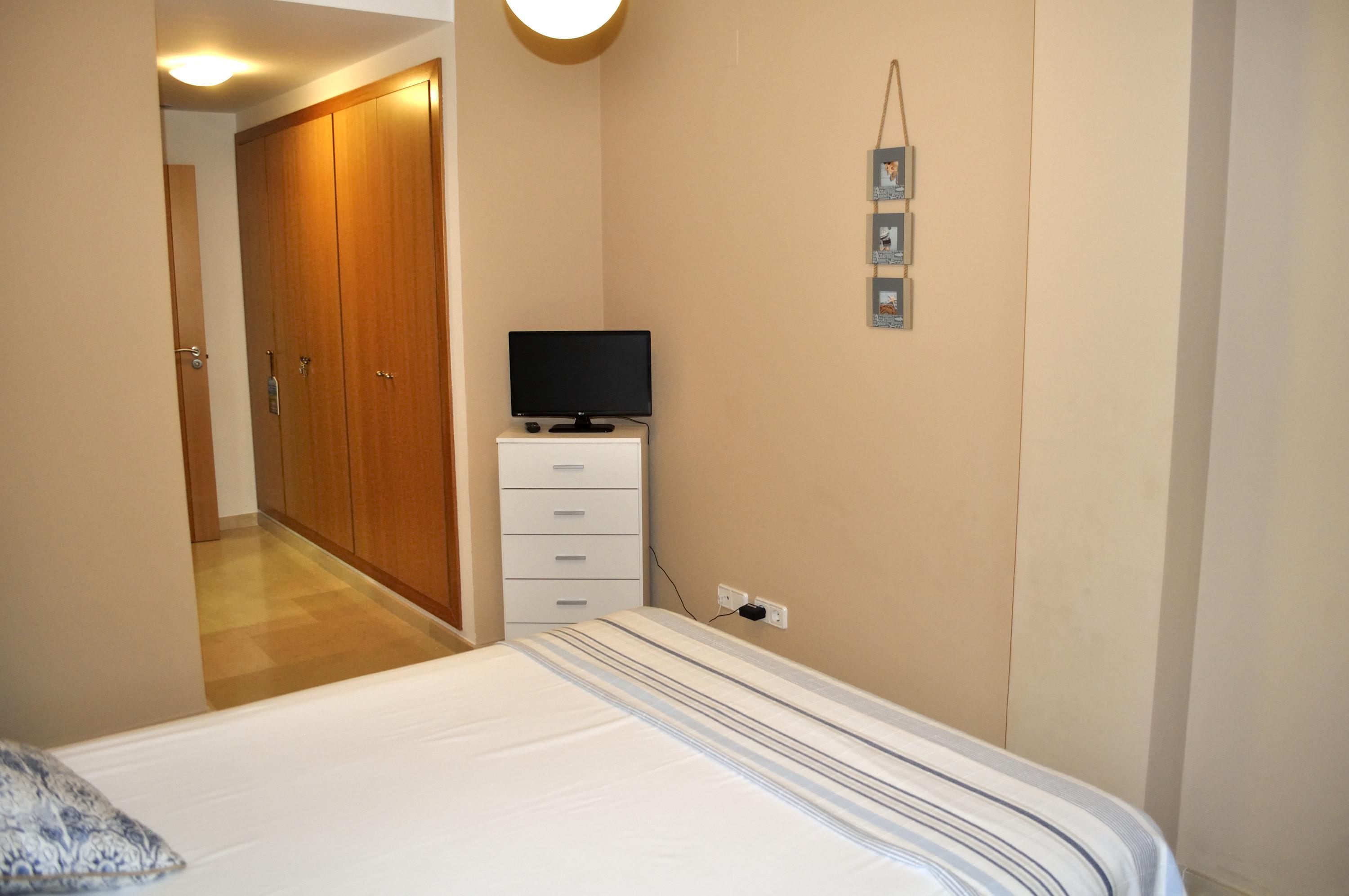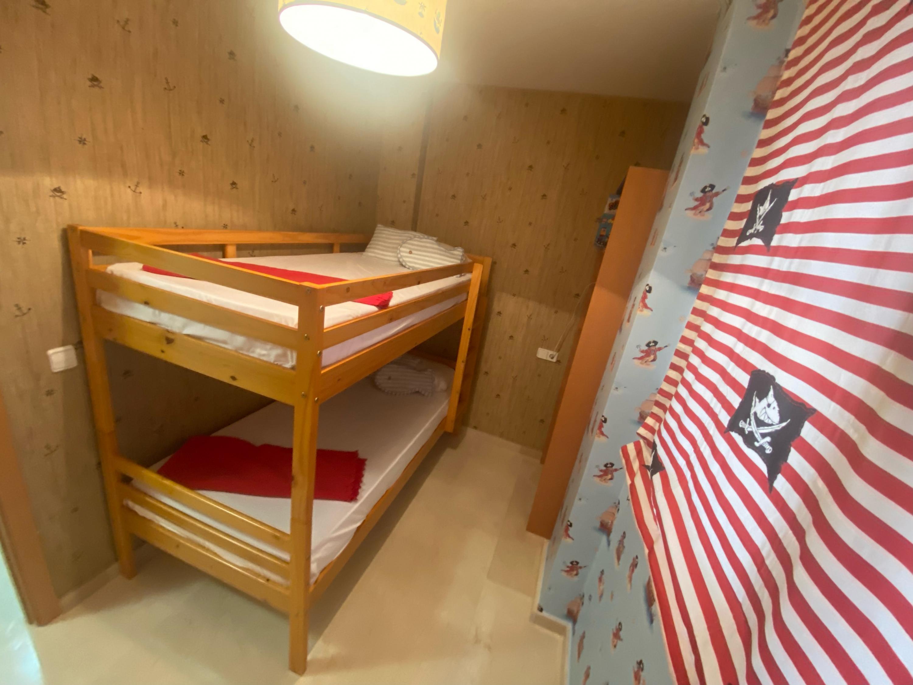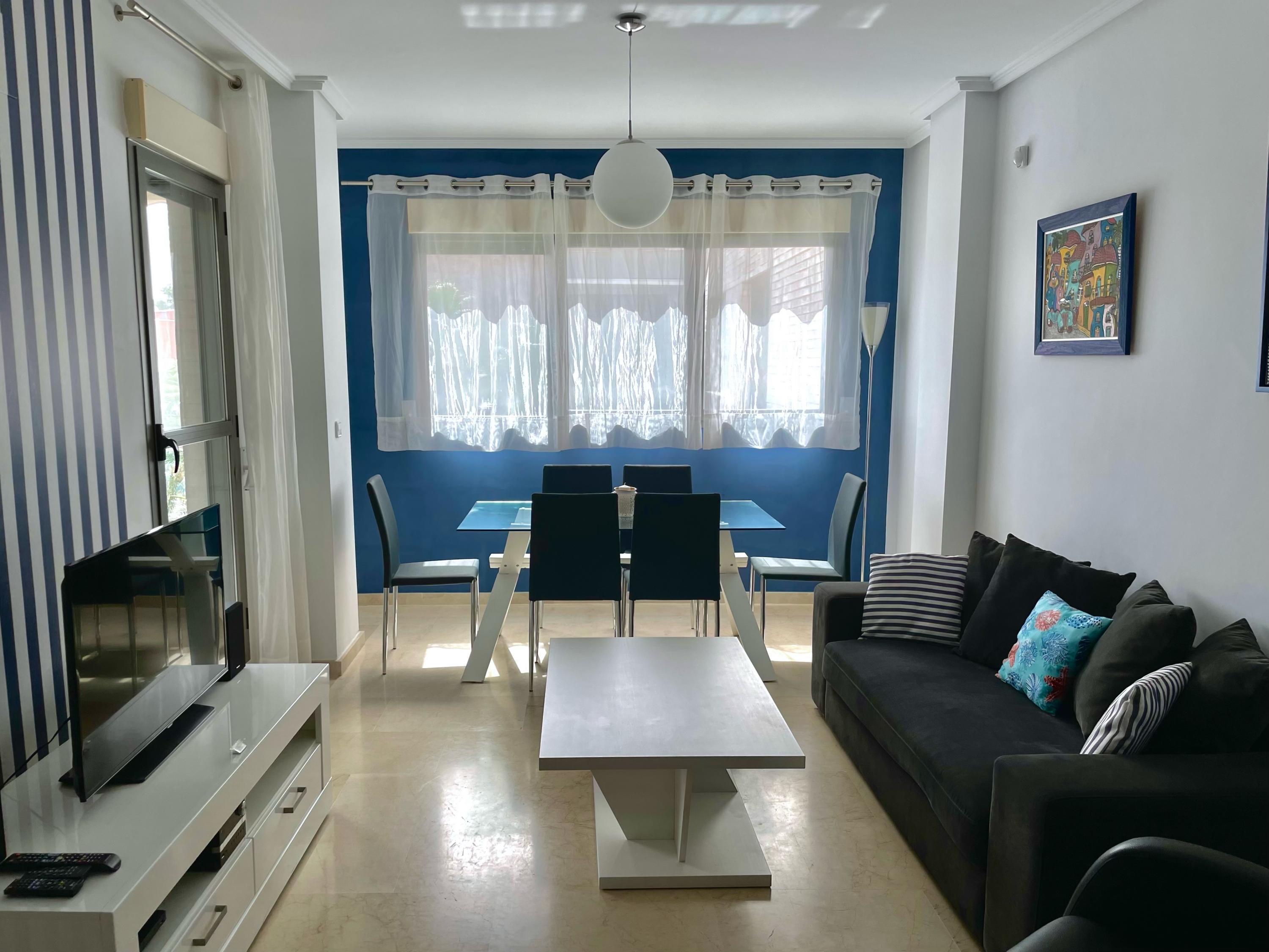Apartment in the port of Dénia 100m from the beach. It is made up of three bedrooms with a bathroom with a bathtub inside the bedroom, 1 bathroom with a shower in the corridor. A dining room that accesses the terrace and the fully equipped independent kitchen. It has centralized air conditioning. The apartment has a terrace with views of the pool and the castle. Landscaped area, swimming pool and garden. The apartment is located about 100 meters from the beach of Las Marines, in the port of Dénia near supermarket, pharmacy, restaurants and other services. Parking place included