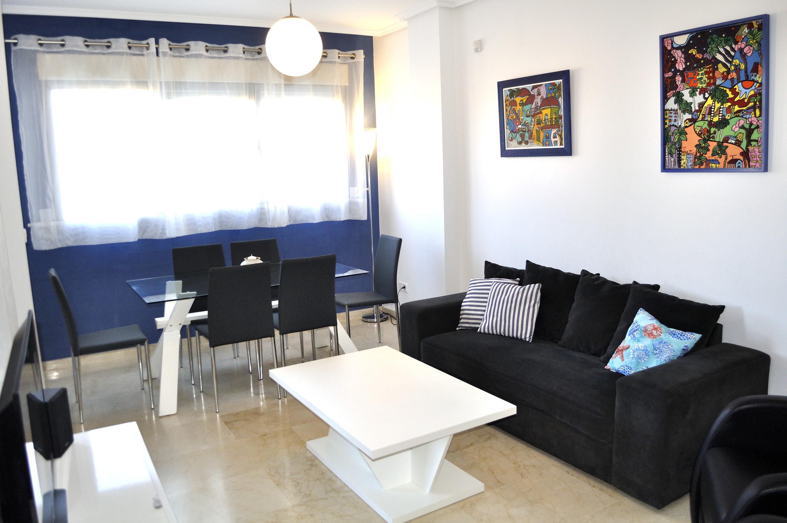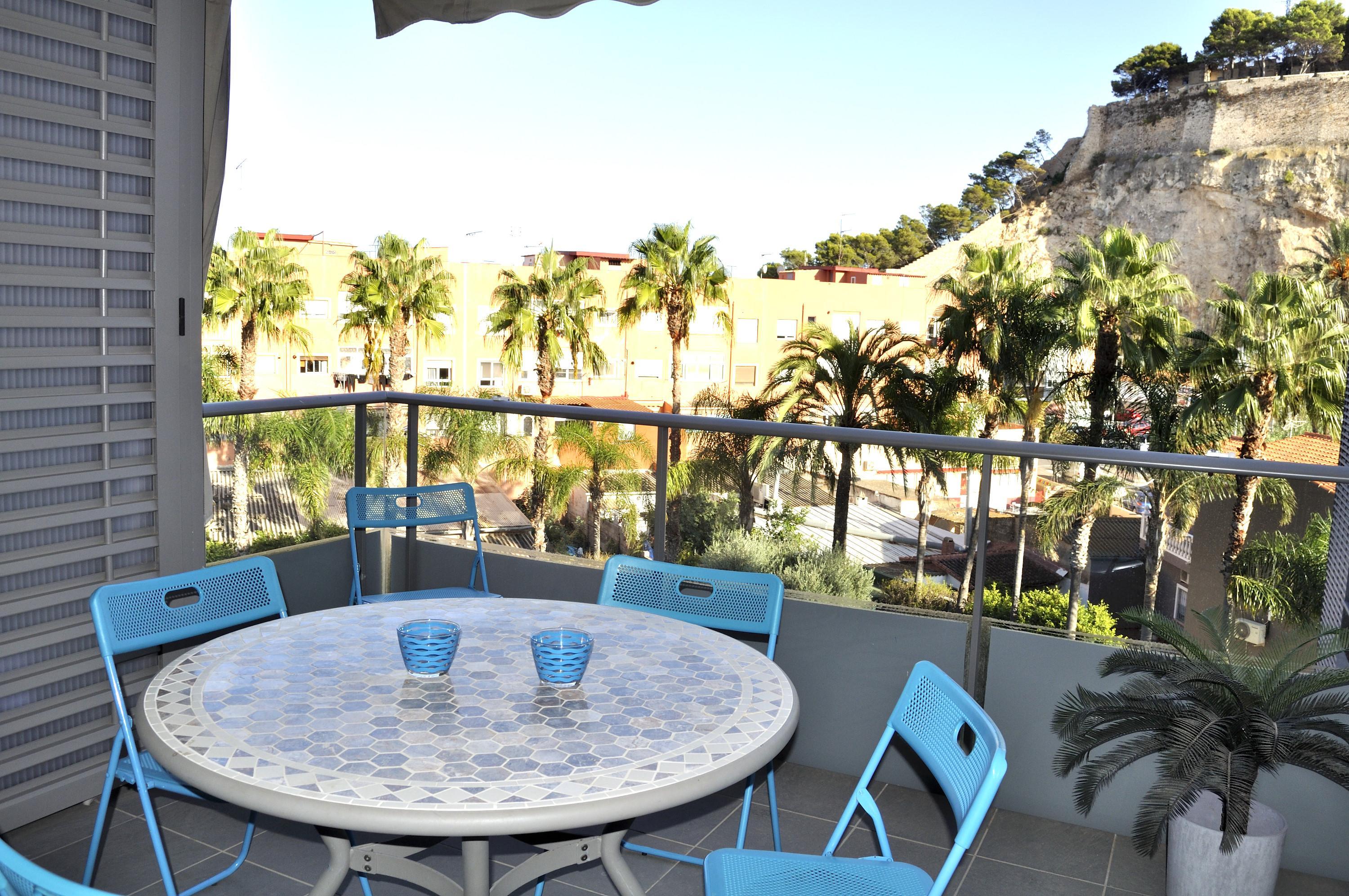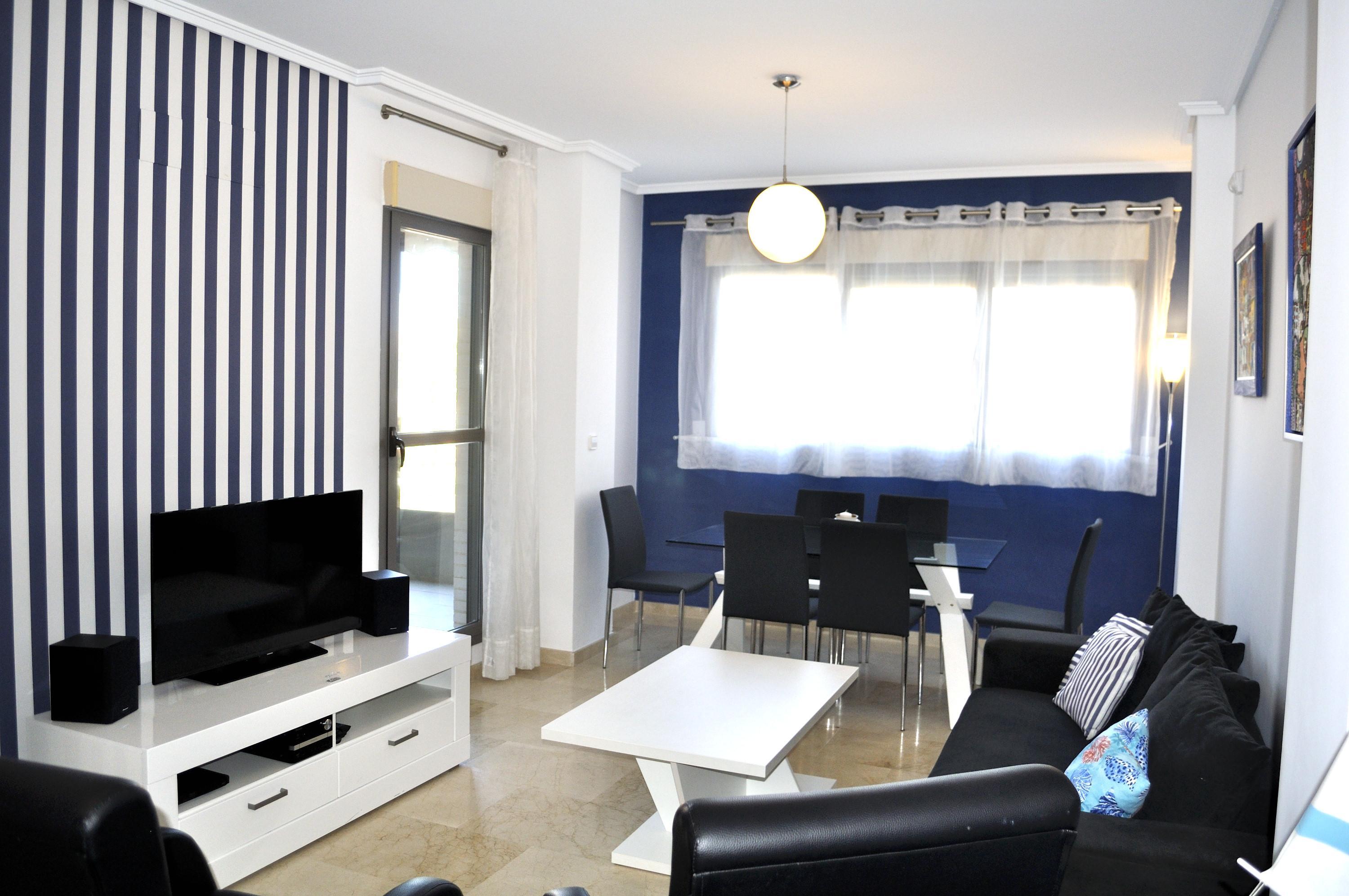 Apartment in the port of Dénia 100m from the beach. It is made up of three bedrooms with a bathroom with a bathtub inside the bedroom, 1 bathroom with a shower in the corridor. A dining room that accesses the terrace and the fully equipped independent kitchen. It has centralized air conditioning. The apartment has a terrace with views of the pool and the castle. Landscaped area, swimming pool and garden. The apartment is located about 100 meters from the beach of Las Marines, in the port of Dénia near supermarket, pharmacy, restaurants and other services. Parking place included