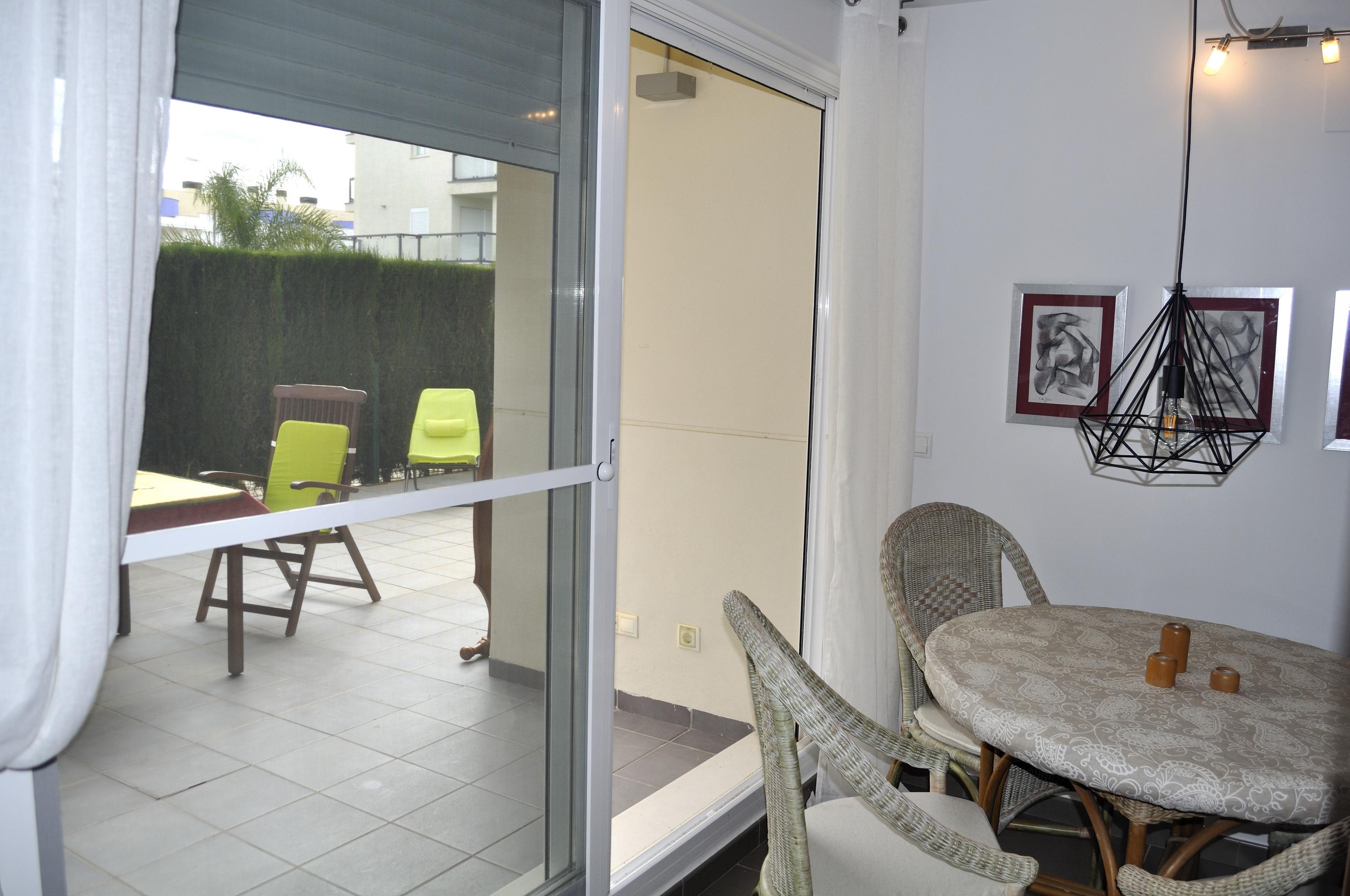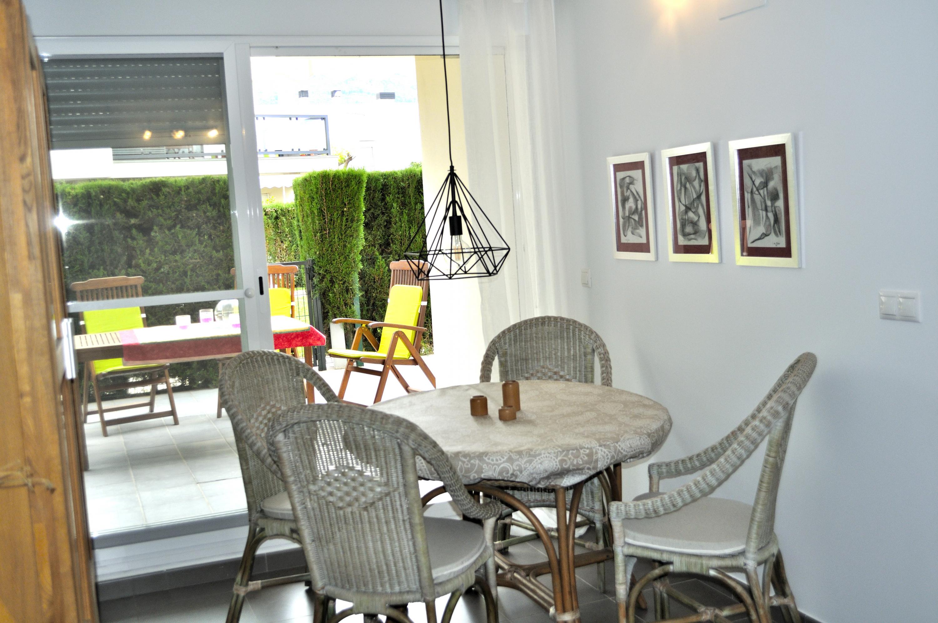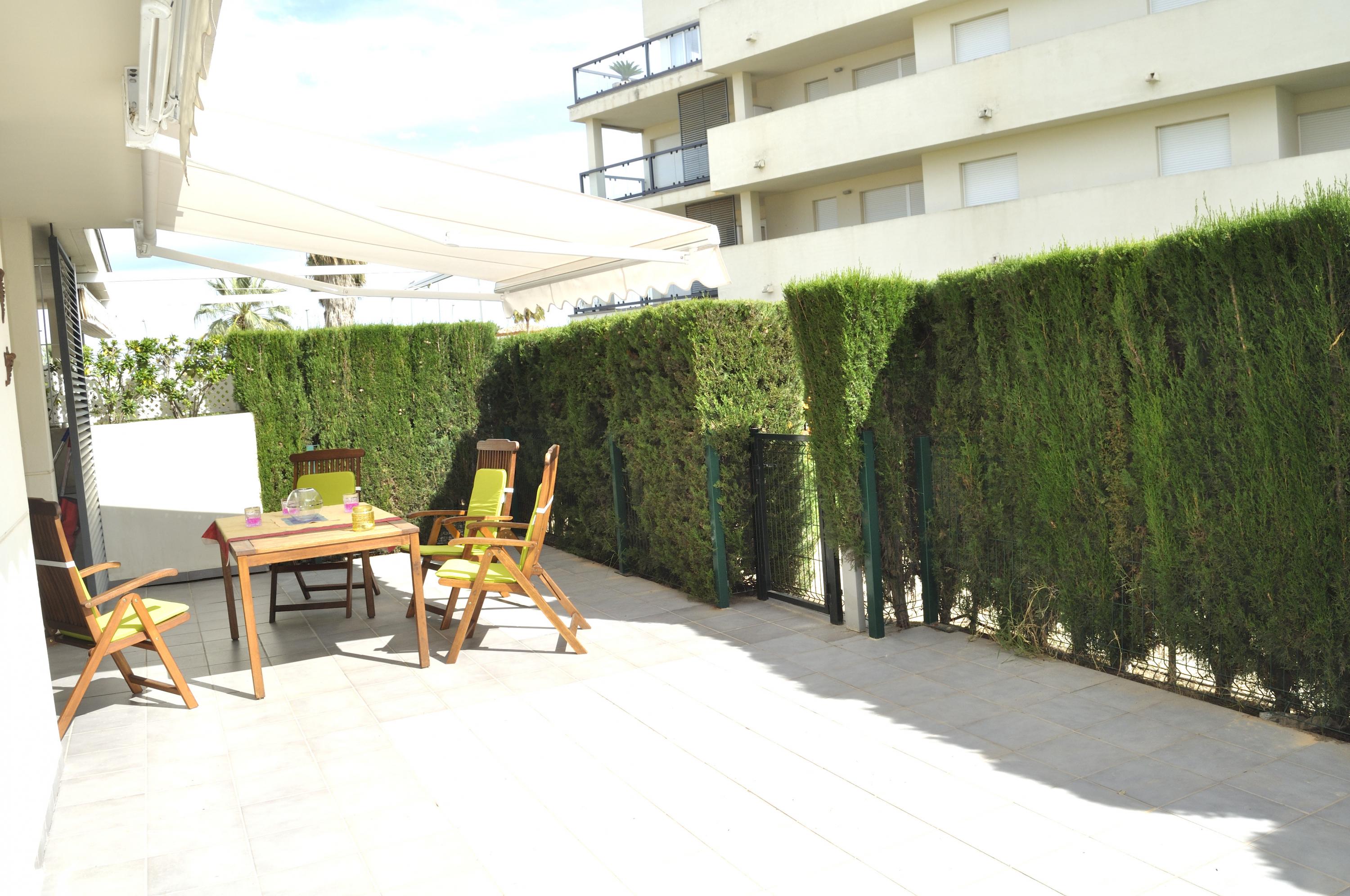 Ground floor apartment, for 4/5 people, modern design, very cozy. The urbanization has a communal pool, garden and playground. The apartment consists of 2 bedrooms, one with double bed of 1.50 cm, bathroom in bedroom with bathtub. The other bedroom with two single beds. Bathroom with shower in the hallway. Living room with access to the terrace overlooking the common area. Separate kitchen with dishwasher. Air conditioning throughout. Wifi. Parking space in the same urbanization. Ses Deveses beach is 1km