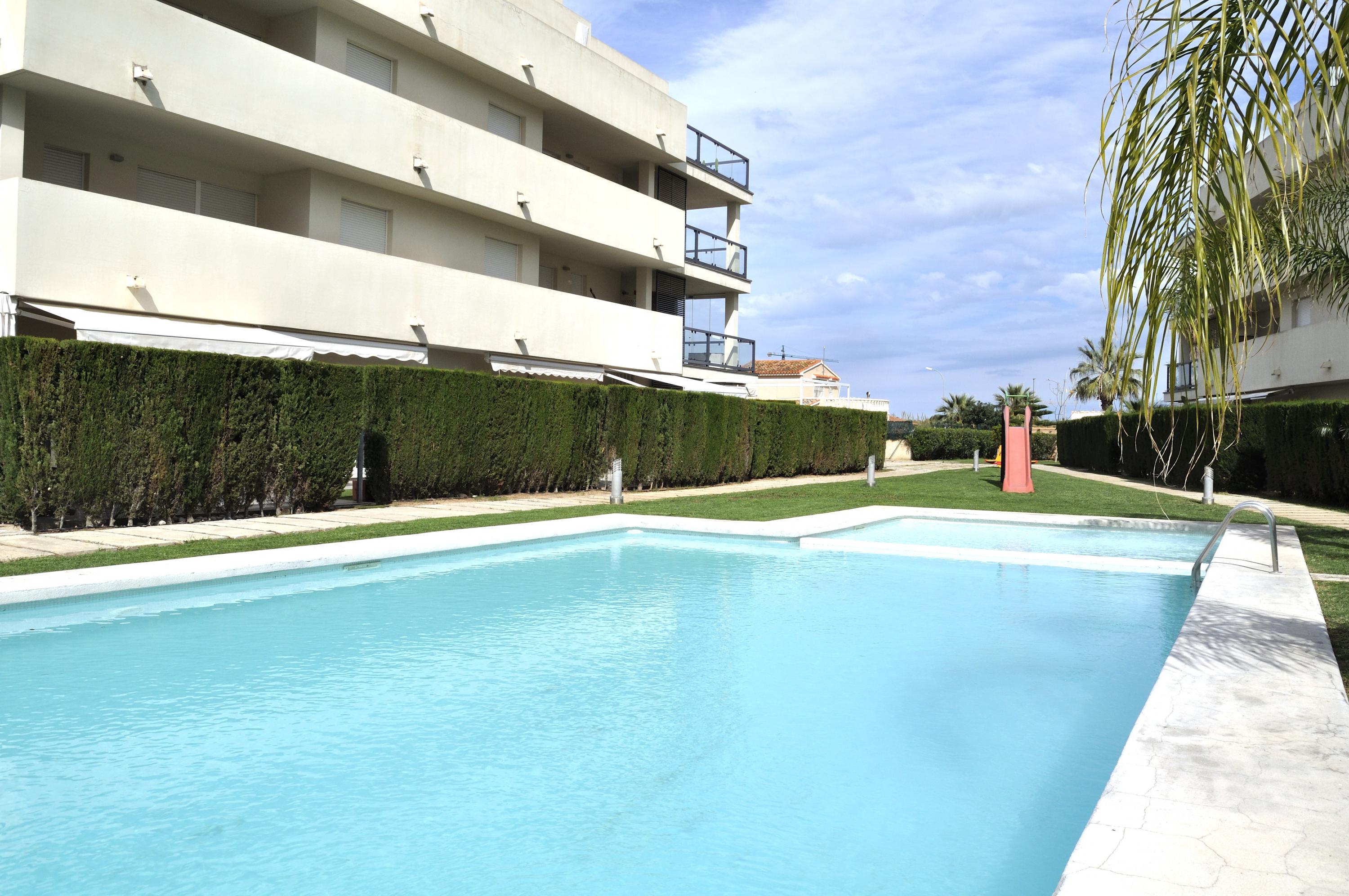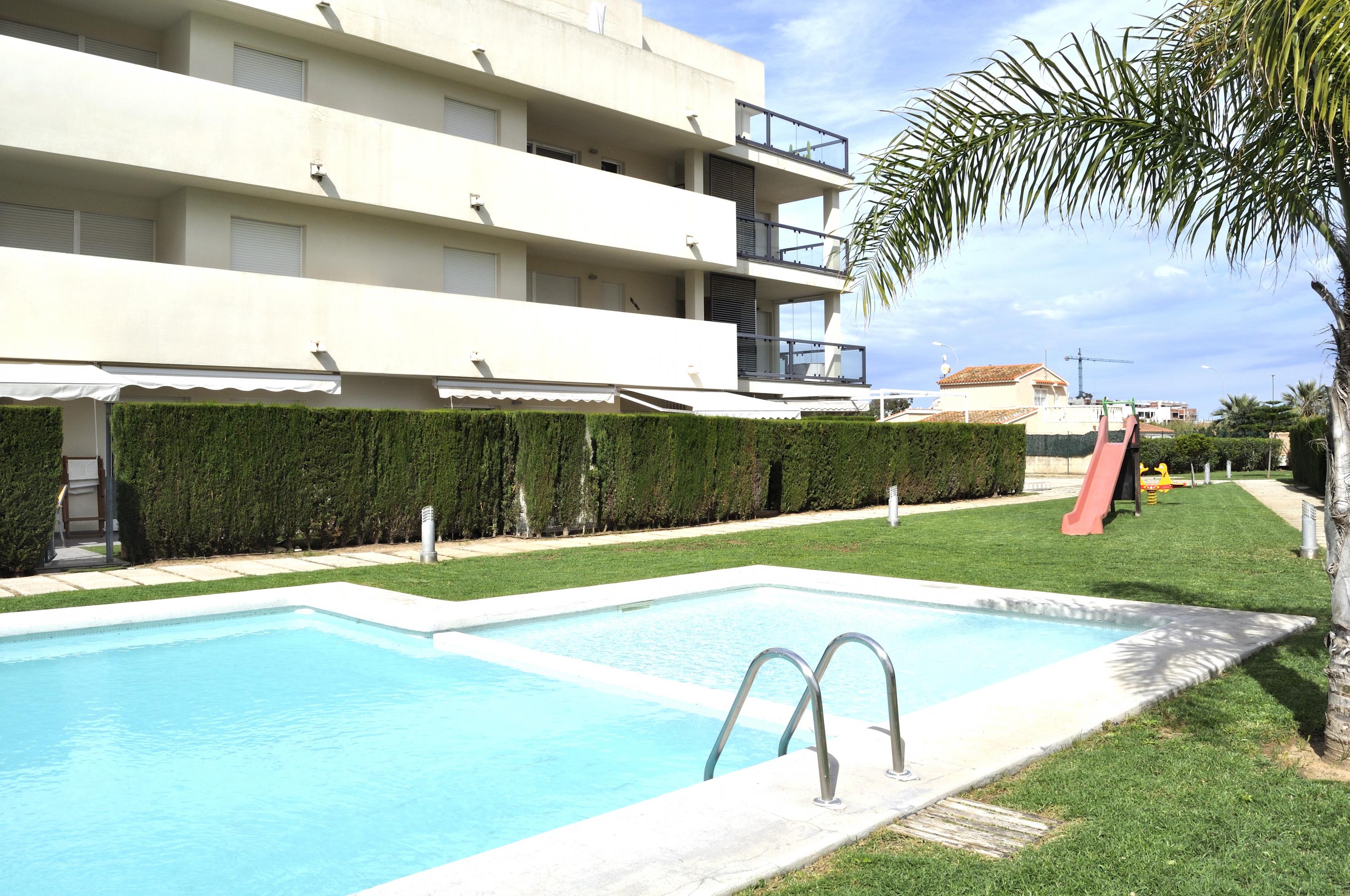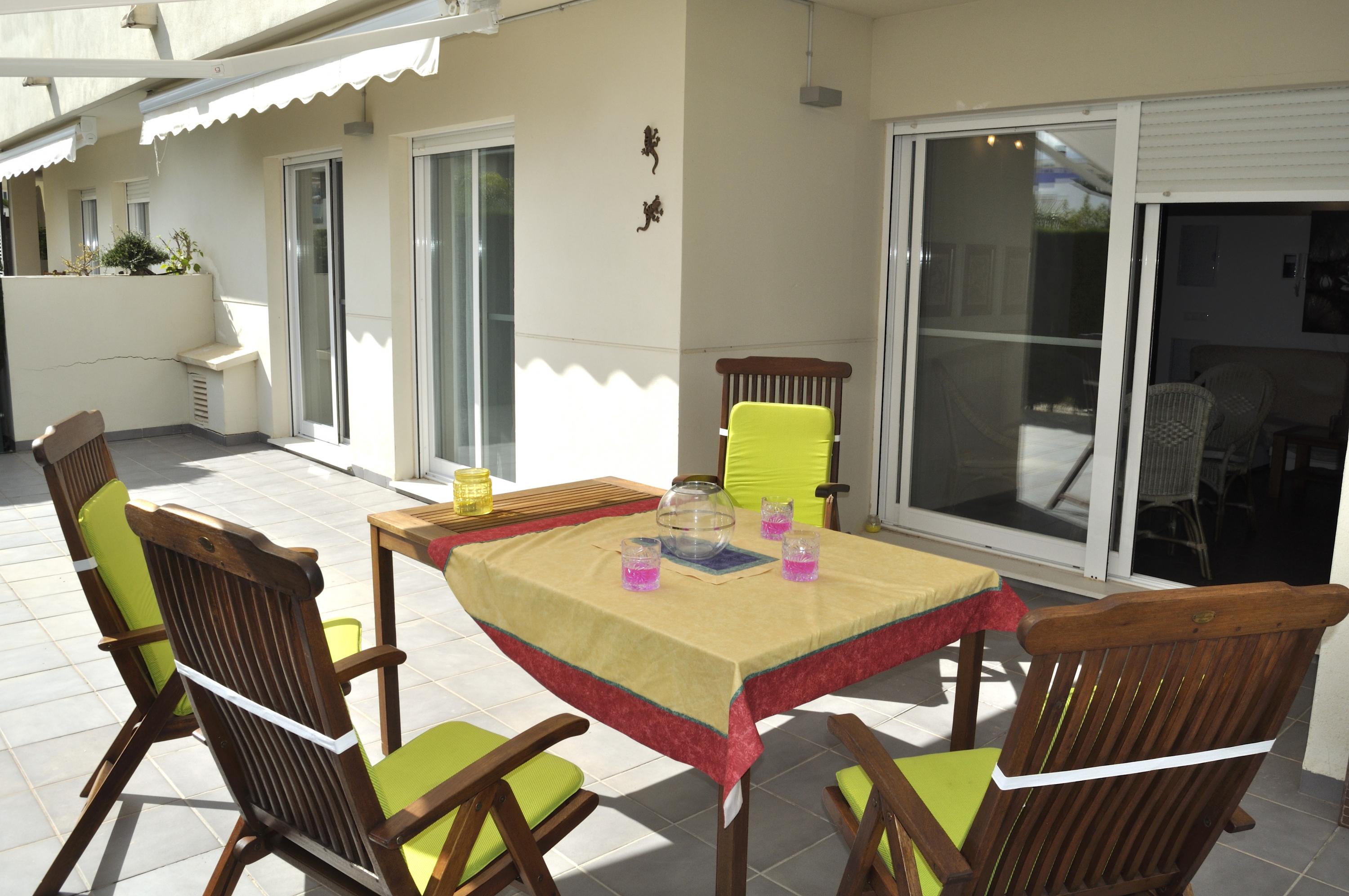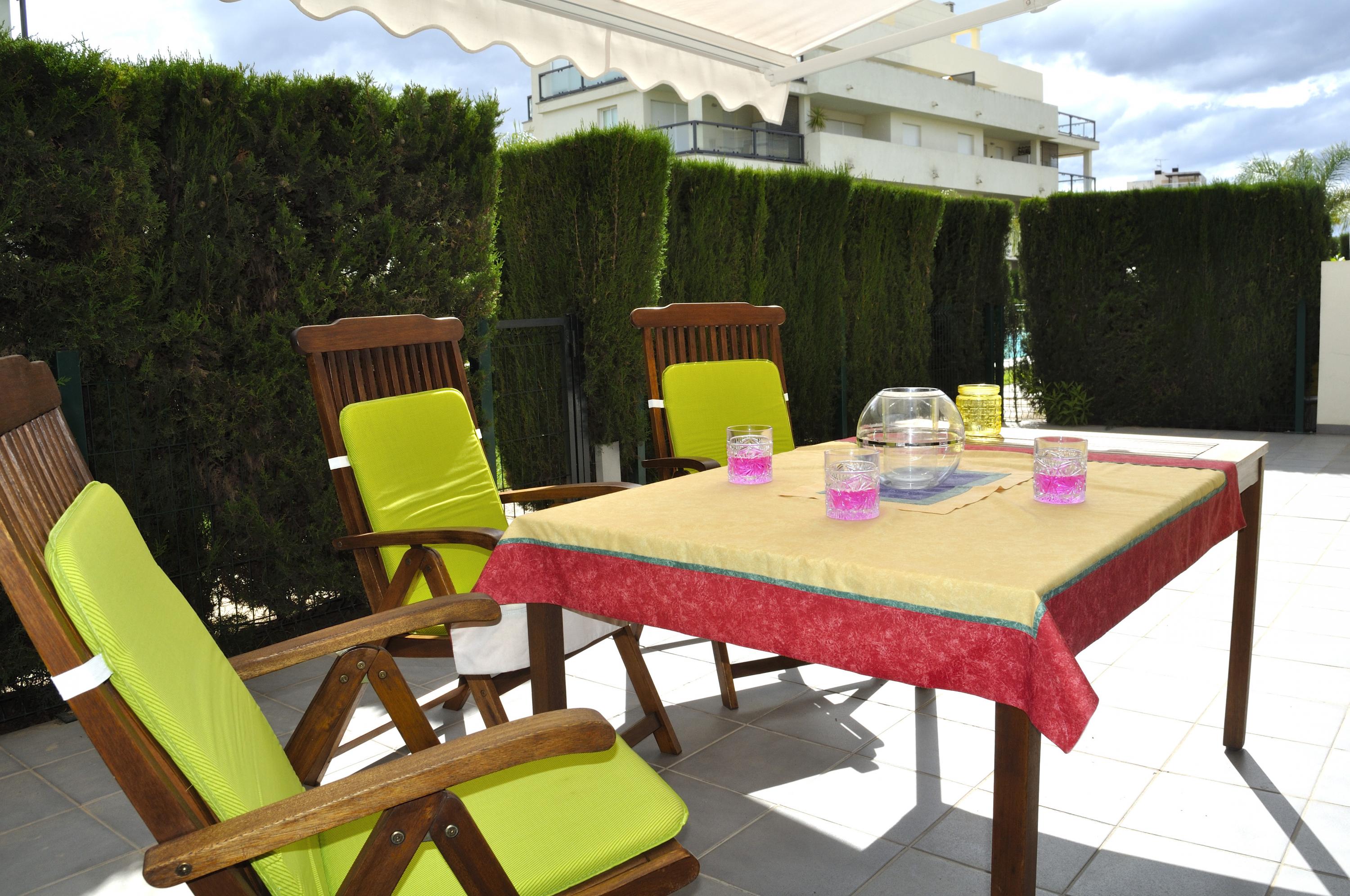 Ground floor apartment, for 4/5 people, modern design, very cozy. The urbanization has a communal pool, garden and playground. The apartment consists of 2 bedrooms, one with double bed of 1.50 cm, bathroom in bedroom with bathtub. The other bedroom with two single beds. Bathroom with shower in the hallway. Living room with access to the terrace overlooking the common area. Separate kitchen with dishwasher. Air conditioning throughout. Wifi. Parking space in the same urbanization. Ses Deveses beach is 1km