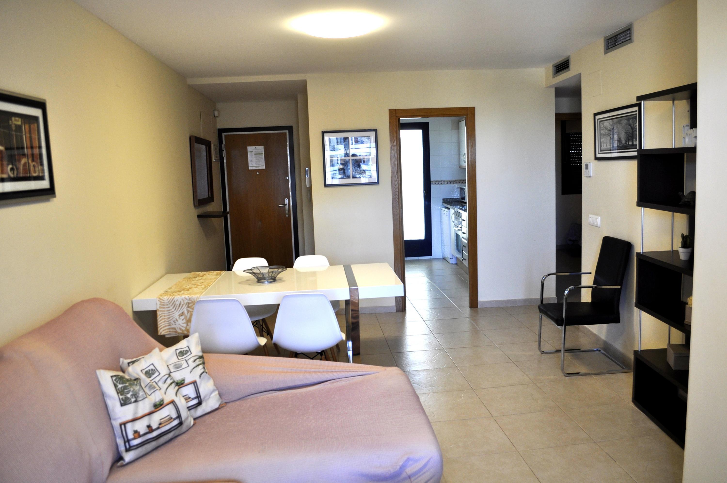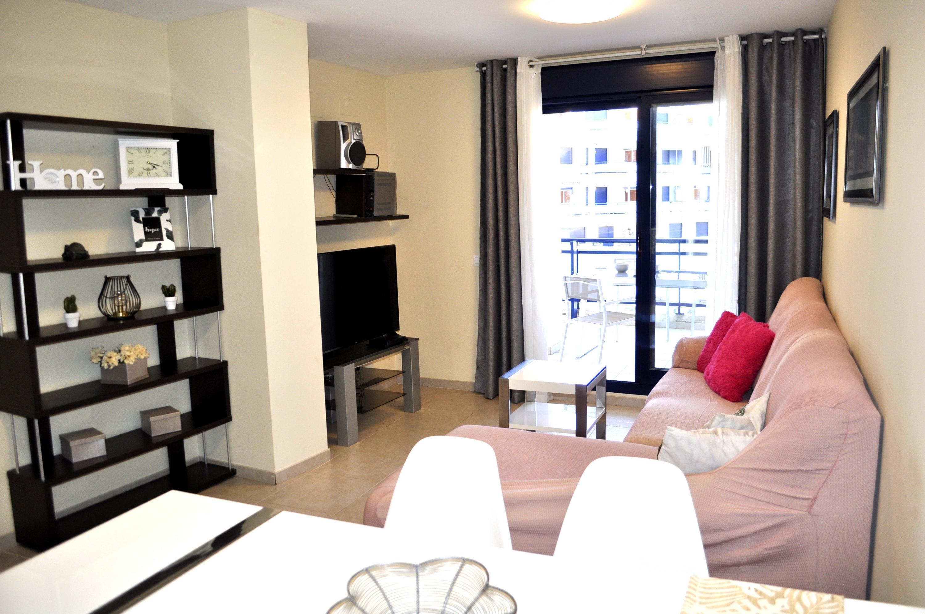 Cozy apartment and modern decorated, located in good area and near Dénia. It has 2 bedrooms and with bath with shower inside the main bedroom, living room, terrace, kitchen fully equiped, second bathroom with bath in the corridor. The apartent has a large terrace with views to the garden and swimming pool with playground, padel and some wiews to the sea port . It has air aconditioned in all the apartment. The apartment is located 150 meter from the sand beach La Marineta Cassiana, 1 km of Dénia, 1 km of the train station (Dénia-Alicante) and more services like supermarket, pharmacy and restaurants.